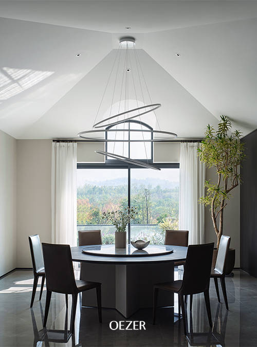 重庆两江新区御临河畔这套1100㎡的别墅,设计师马艾洋先生便是通过光构造出空间灵魂,让人们更专注地看见,天然的美好与朗逸。